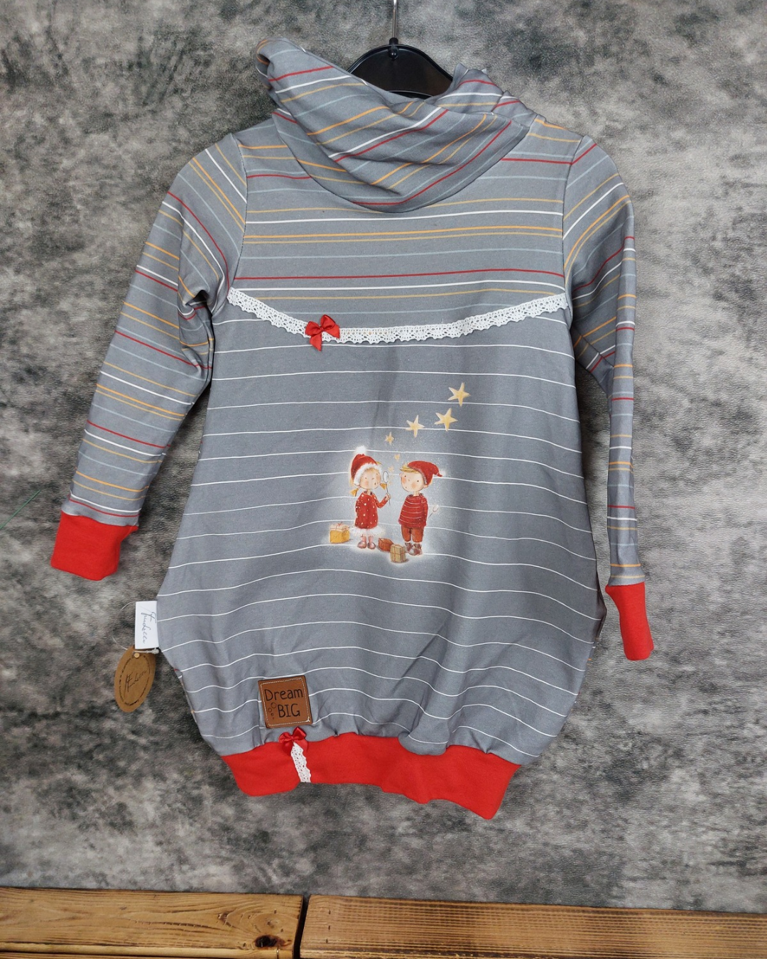 Ballonkleid Gr. 104 mit Wickelkragen mit weihnachtlichem Motiv.