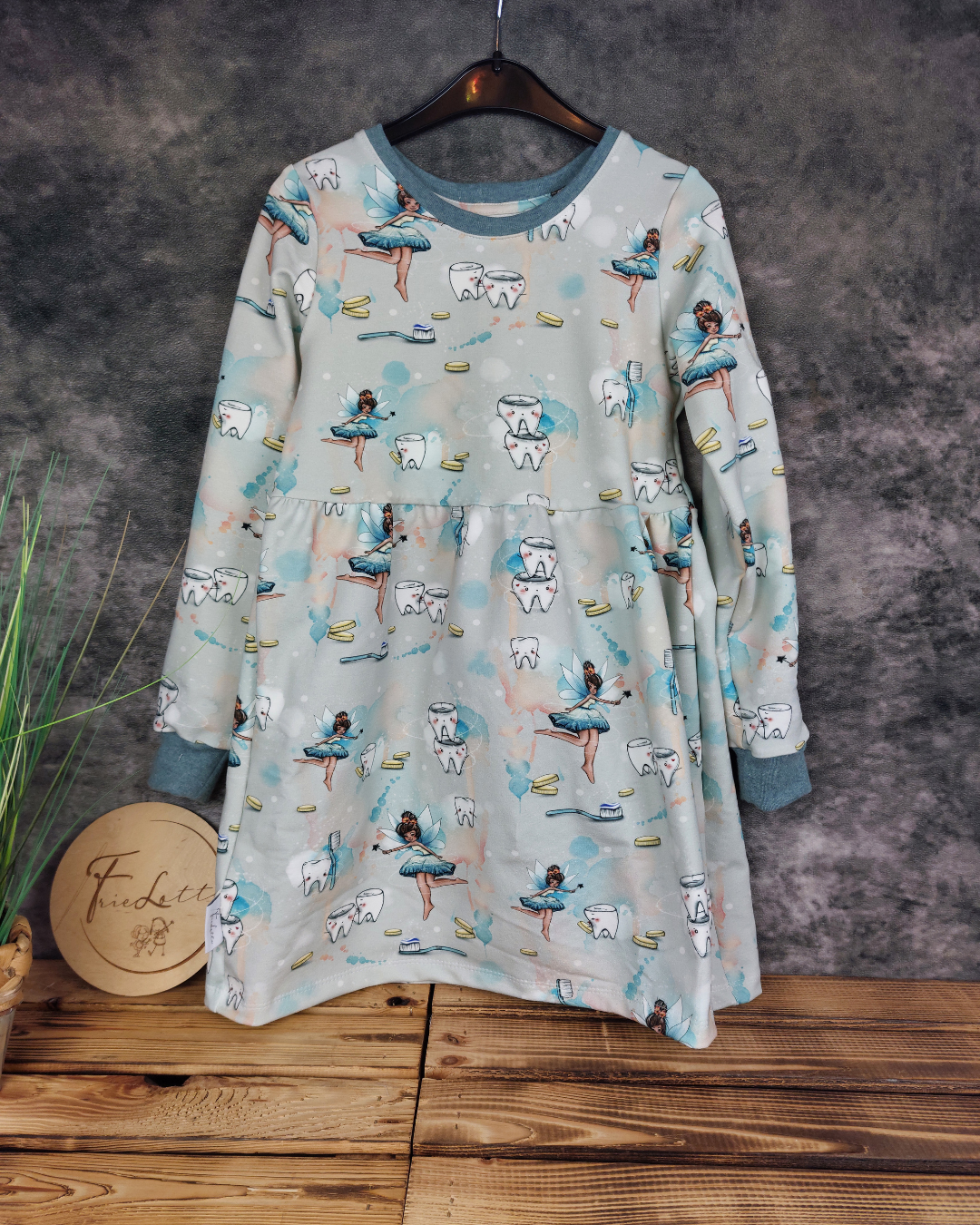Basickleid in Gr. 122 mit süßem Zahnfee-Motiv.